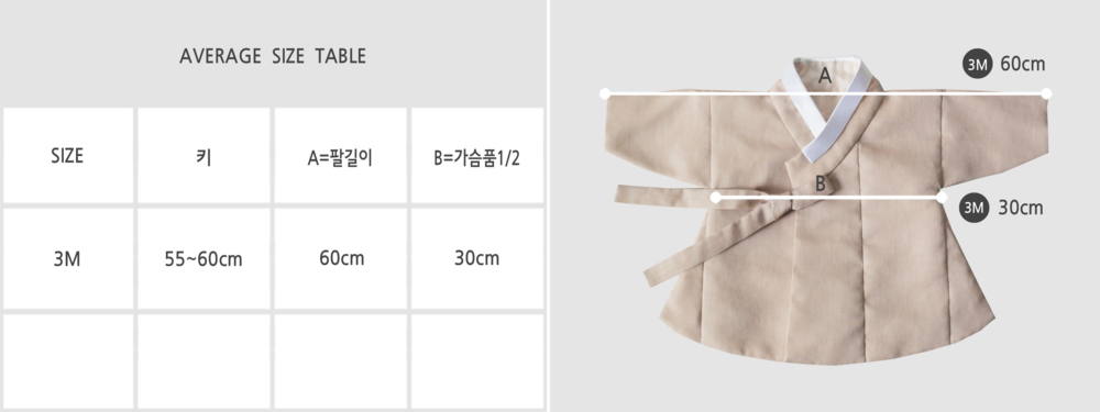 한복은 원단 특성상 신축성이 없으므로 상의를 기준으로 가지고 계신 옷과 비교해주세요.
