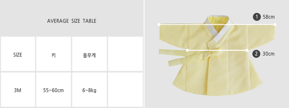 한복은 원단 특성상 신축성이 없으므로 상의를 기준으로 가지고 계신 옷과 비교해주세요.