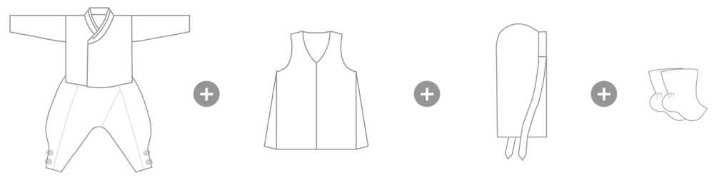 저고리, 바지(택1), 전복, 복건(택1), 버선