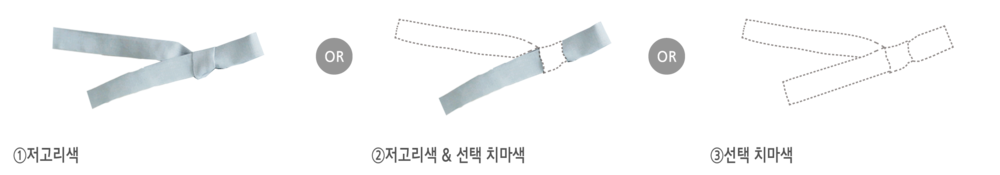 + 디자인 옵션에서 고름 색상 변경 가능하며, 조바위는 원하는 디자인으로 추가 가능합니다.
