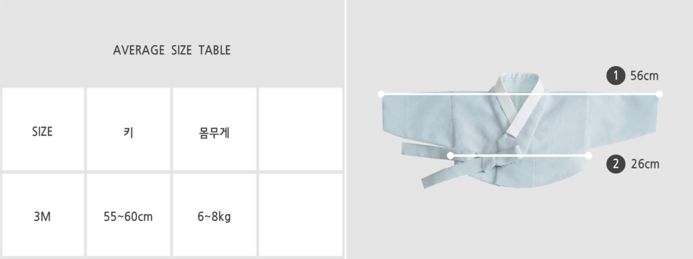 한복은 원단 특성상 신축성이 없으므로 상의를 기준으로 가지고 계신 옷과 비교해주세요.