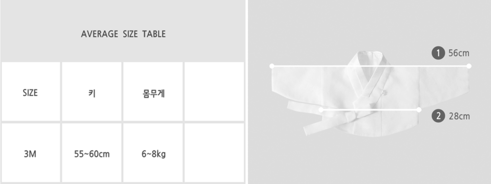 한복은 원단 특성상 신축성이 없으므로 상의를 기준으로 가지고 계신 옷과 비교해주세요.