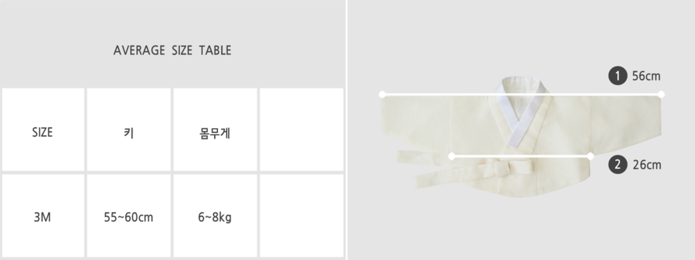 한복은 원단 특성상 신축성이 없으므로 상의를 기준으로 가지고 계신 옷과 비교해주세요.