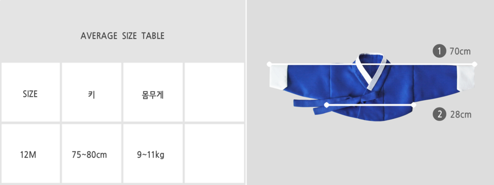 한복은 원단 특성상 신축성이 없으므로 상의를 기준으로 가지고 계신 옷과 비교해주세요.