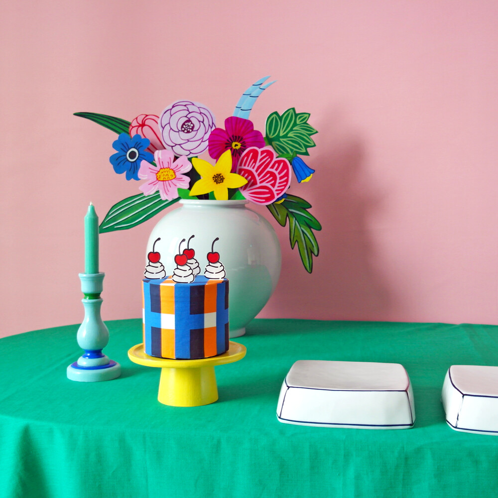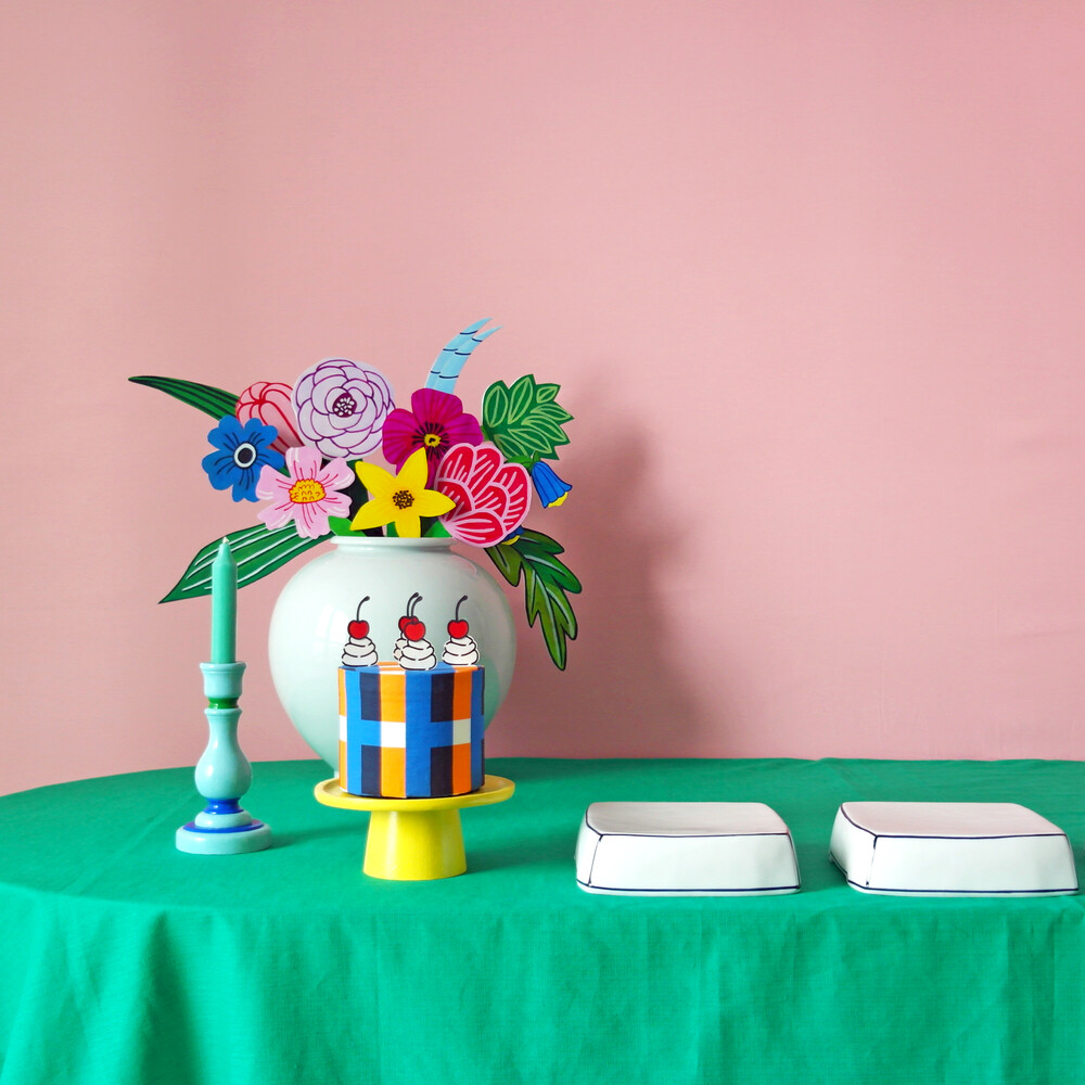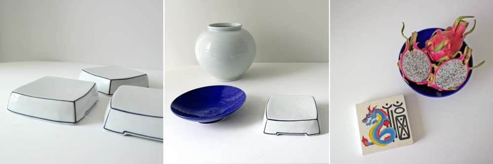 선명한 청색의 아웃라인이 마치 그림인듯 눈길을 사로잡는 사각 굽접시