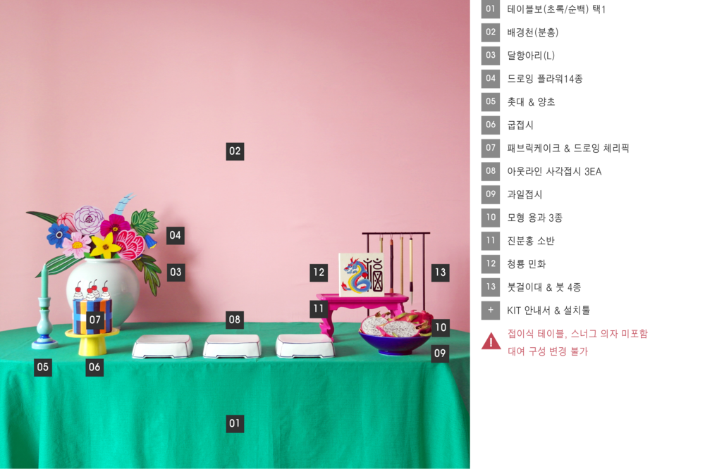 수취 당일 동봉된 체크리스트를 기준으로 소품들을 확인해주세요.