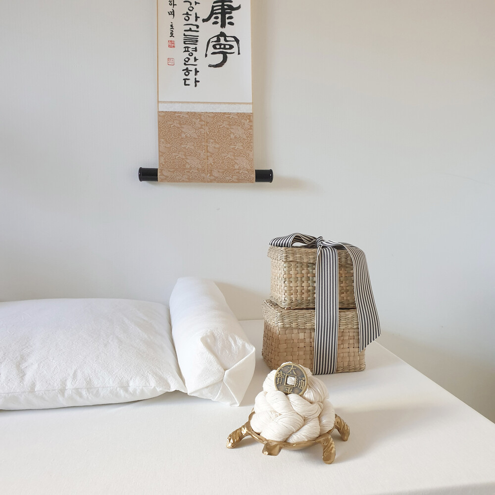 석작으로 엮어 만든 상자에 엄마 바람을 차곡이 담아