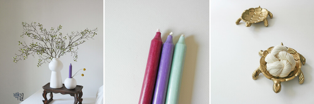 세 가지의 오브제의 합은 달리 설명하지 않아도 엄마 아빠의 마음을 담기 충분하죠.