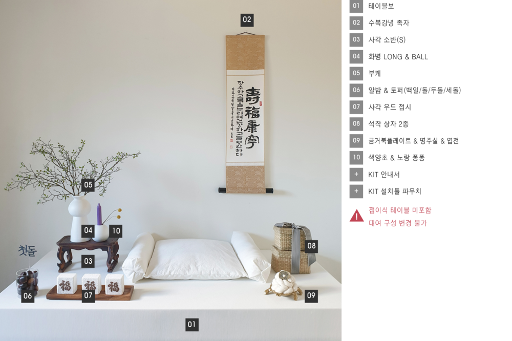 수취 당일 동봉된 체크리스트를 기준으로 소품들을 확인해주세요.